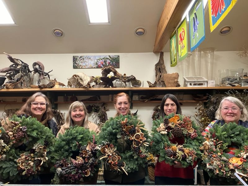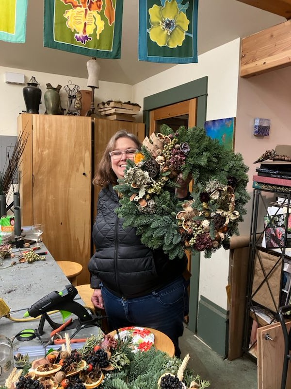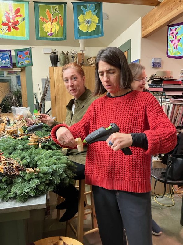 Peaches making Christmas wreaths