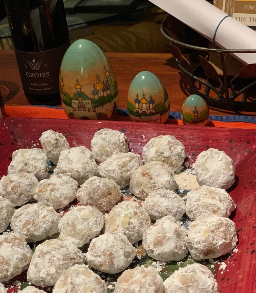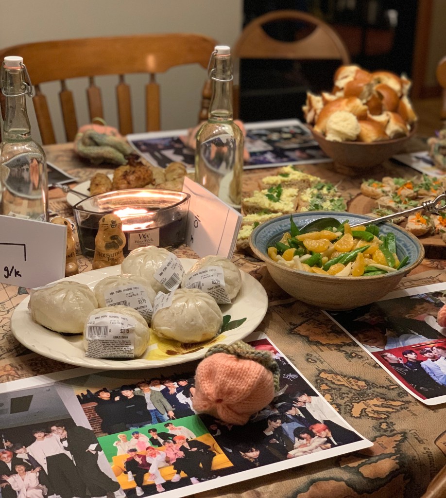 I made sultans chicken, honey squash, honey goat cheese triangles, and Alexis made a delicious honey cake too