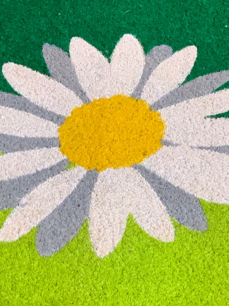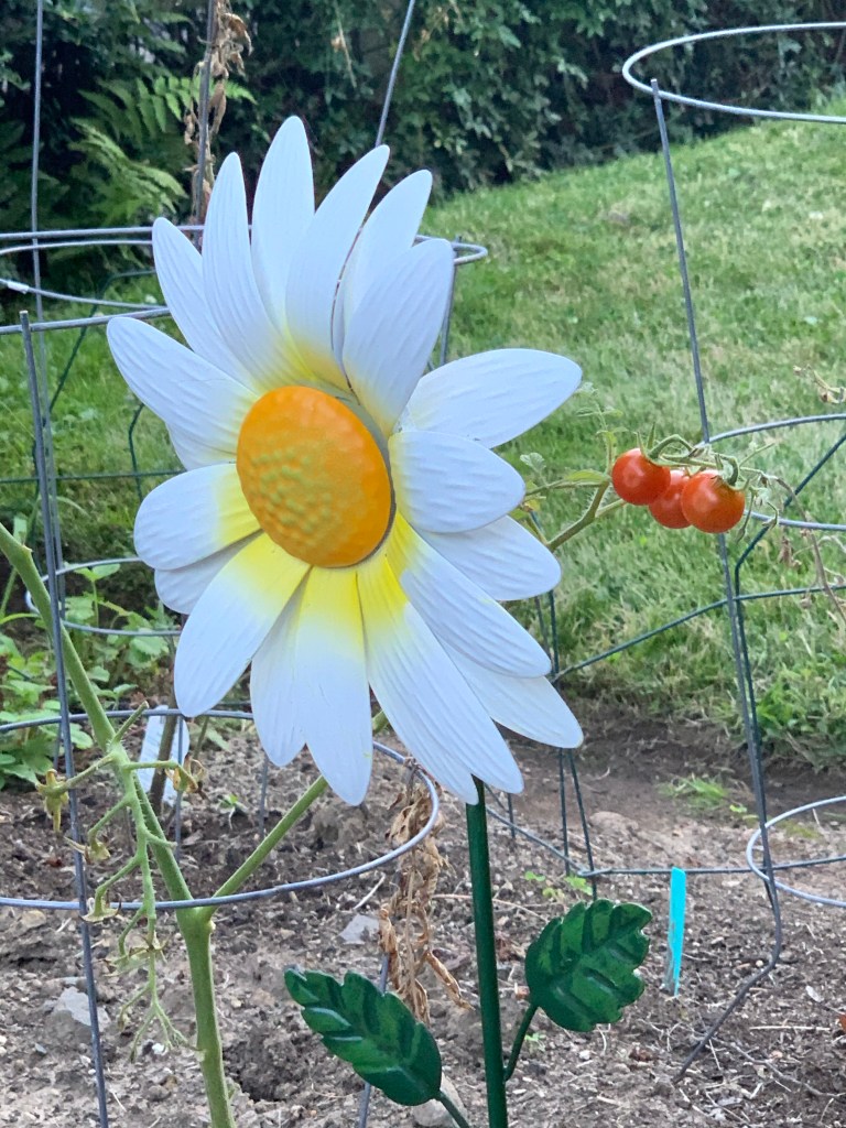 Her round face was red and the freckles stood out like spotting on a hill country π.